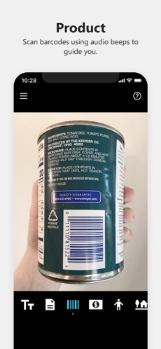 - Prodotti - Scansiona i codici a barre, utilizzando i segnali acustici per guidare l'utente; sente il nome e le informazioni sulla confezione, se disponibili. (funziona con iPhone 6 e successivi)